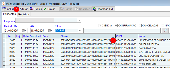 - Selecione a nota que deseja alterar e clique no botão "alterar"
