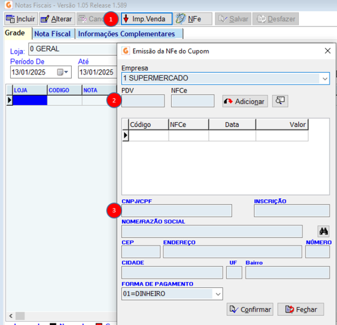 - Informe o número do PDV* e o número da NFCe* constante no cupom NFCe;