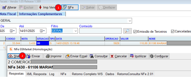 - Clique no botão enviar para o GSMarket solicitar autorização da referida NFe;