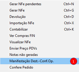 - Clique com botão direito e selecione a opção *Manifestação Dest.Conf.Op*