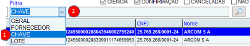- Clique no campo FILTRO ↓ e selecione a opção: *chave*. No campo conteúdo informe a *chave da NFe ou número da NFe* e pressione *ENTER*⤵️ 2x
