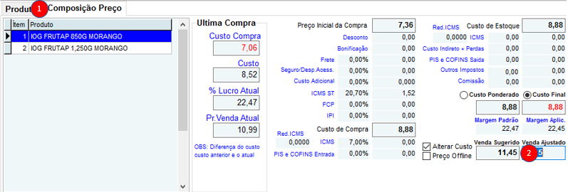 - Na tela de compras (próxima tela), acesse a aba *composição preço*