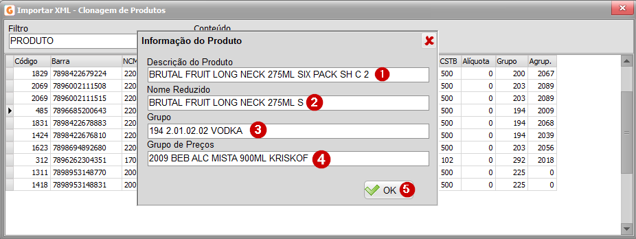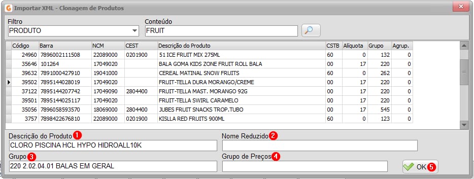 Tela destinada a clonagem de produtos de forma simplificada durante a importação do XML de Compra