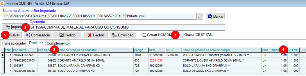 - No campo Qt.Emb informe a quantidade contida na embalagem. Se for em unidade, deverá estar sempre 1;