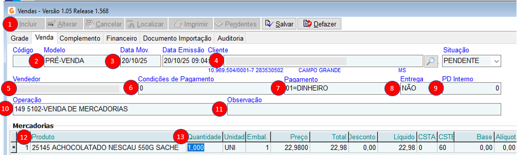 - O campo *Entrega* é só para informação no pedido *ENTER*⤵️